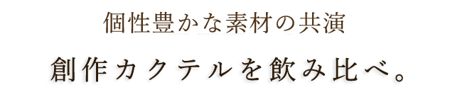 多種多様なGreen Spotの創作カクテルで、新たな味わいと出会う楽しさをご堪能ください。当店では数多くの創作カクテルをご用意しておりますが、こちらでは選りすぐりの一杯をご紹介致します。ペアリングでさらに美味しいおつまみもご一緒にどうぞ。