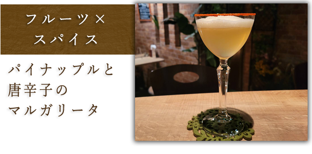 それをパイナップルを浸け込んだテキーラと合わせ、個性的なマルガリータに仕上げました。